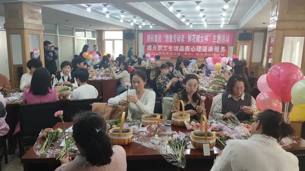 活動中,邀請了包頭市陳欣心理學校的老師針對現(xiàn)代女性在工作、生活中如何進行自我調(diào)節(jié)和自我放松,從而促進了女職工的身心健康。隨后,花藝老師從選花、裁剪、顏色搭配、造型等多方面講解插花技巧。大家將修剪好的花束插入花籃中,一籃籃春意盎然、獨具匠心的插花作品應運而生。通過學習插花,既陶冶了情操、提高了審美,又增強了女職工的幸福感。